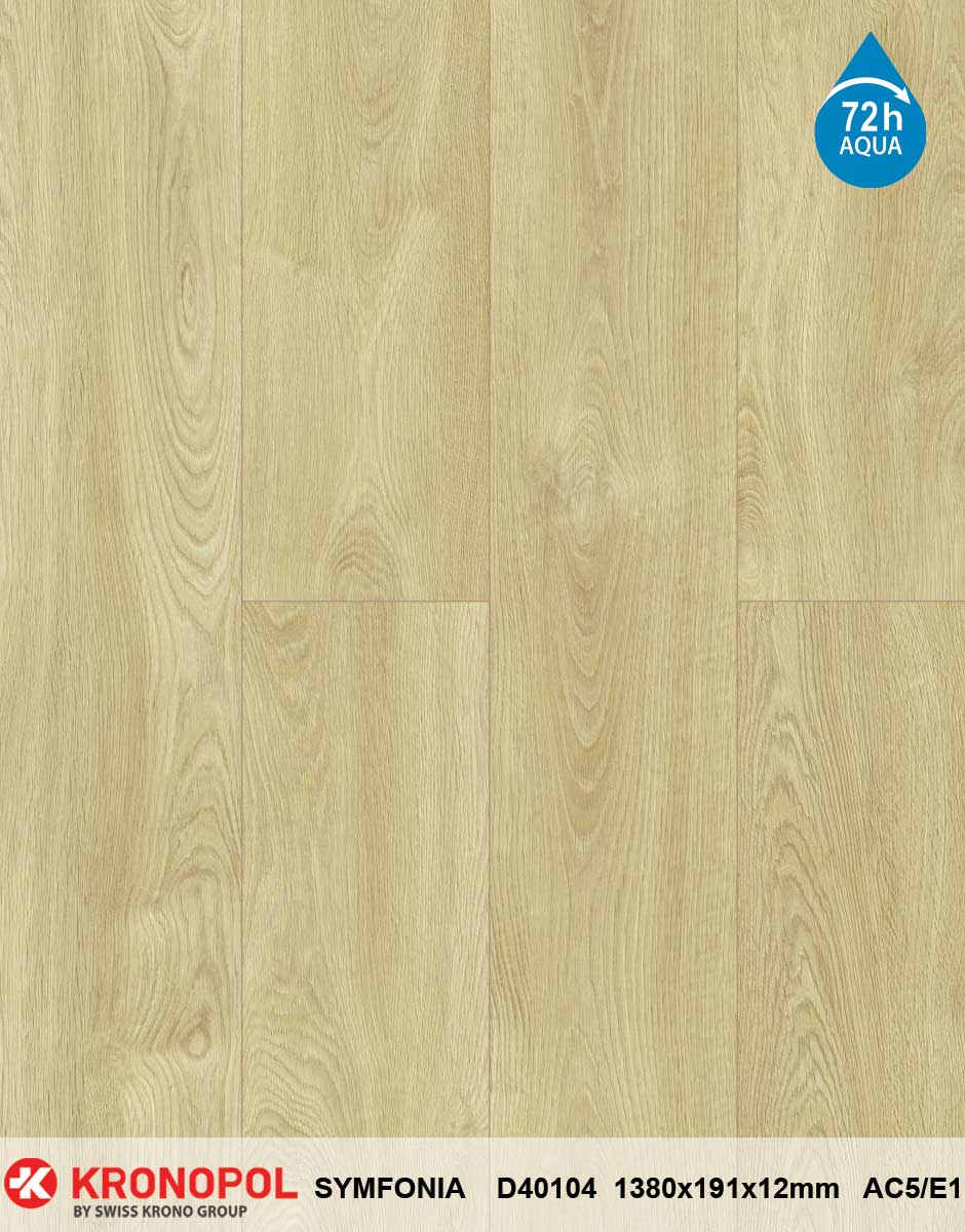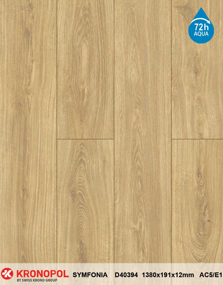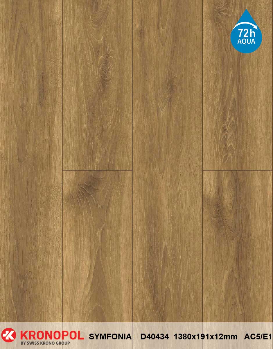 Sàn gỗ Kronopol Aqua Symfonia – 12mm/AC5 là dòng sàn gỗ siêu chịu nước của Kronopol, có độ dày 12mm, độ chống trầy xước AC5 (cao nhất hiện nay), chịu được mật độ đi lại cao.